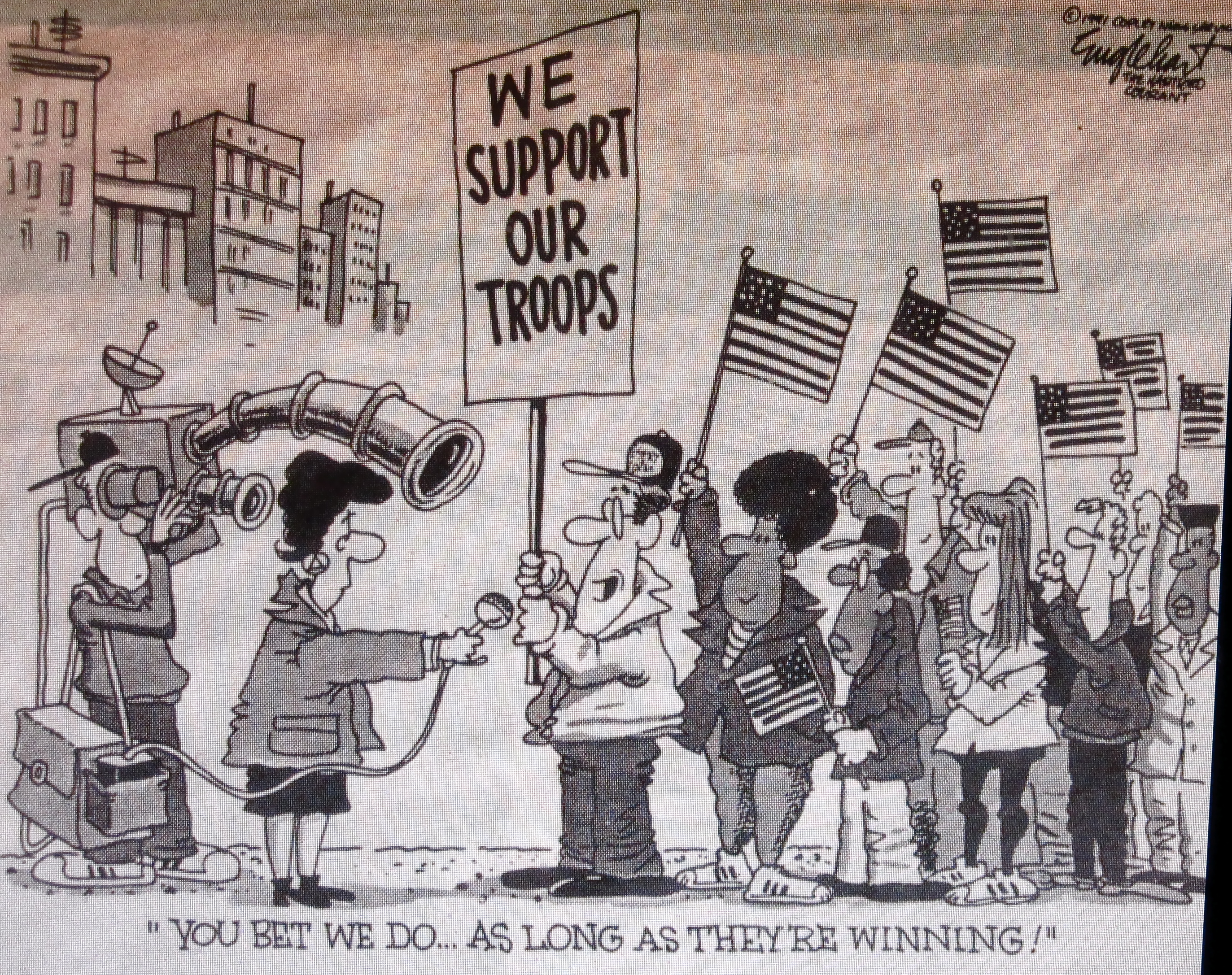 Now with the Gulf War everyone has jumped onto the juggernaut. Thoughtful progressives like Maryl Streep have out-photo-opped the most shameless war lovers.