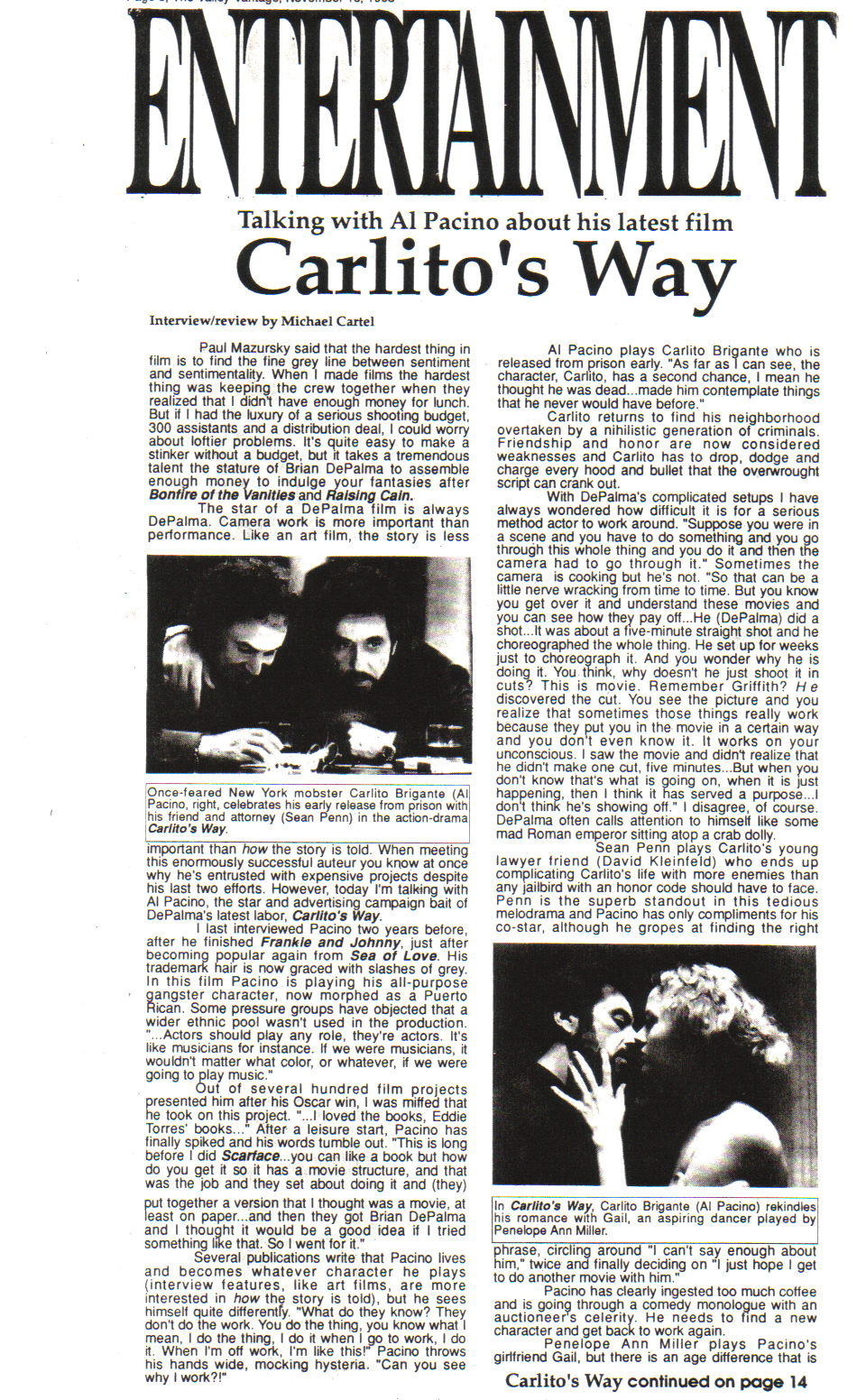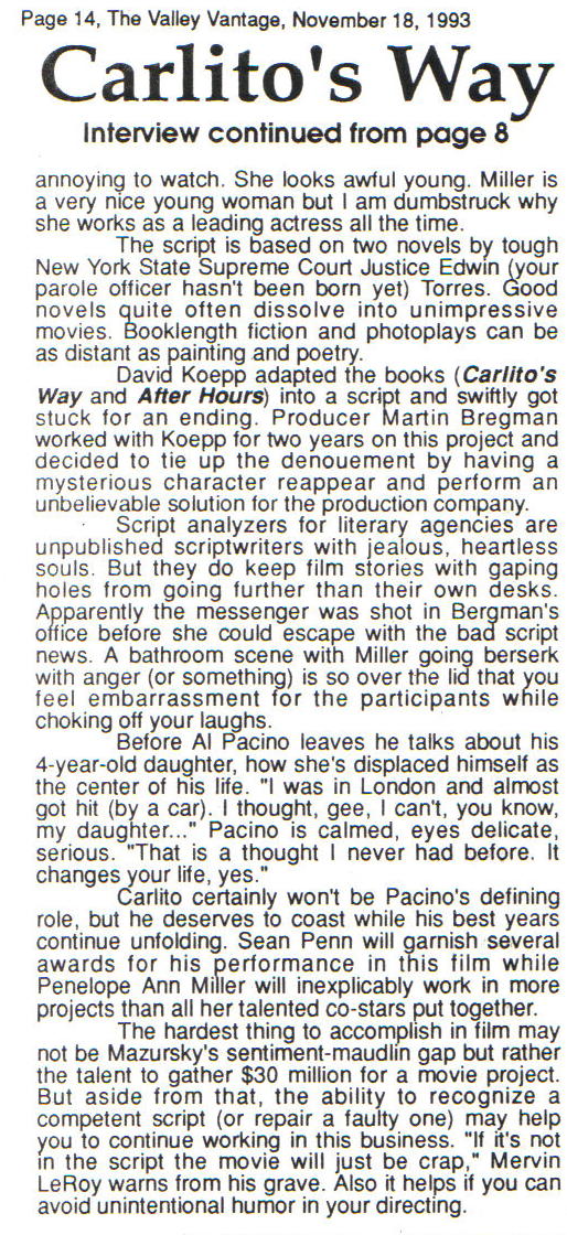 TALKING WITH AL PACINO WITHIN EARSHOT OF BRIAN DePALMA 19 Jan January 19, 2015 Michael Cartel 1993 CLICK TO ENLARGE ©Michael Cartel 1993Story borrowed from my Valley Vantage newspaper in 1993